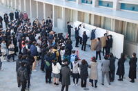 共通テストまであと60日弱という時期でしたので、成績の伸びやこれからやるべきことを、担任だった先生方と熱心に話している姿があちこちで見られました。印象的だったのは、担任だった先生が他の生徒と話している間、その時間も無駄にせずに勉強している姿。みんな本当に頑張っているんだなあとしみじみ実感しました。