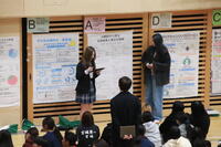 当日は、1・2年次生による探究活動の成果発表に加え、他校生や卒業生の発表も行われ、多様な視点から互いに学び合う機会となりました。本校の発表は77題、他校発表は25題、卒業生発表は1題で、会場となった体育館では、ポスター発表を通して活発な質疑応答が交わされました。