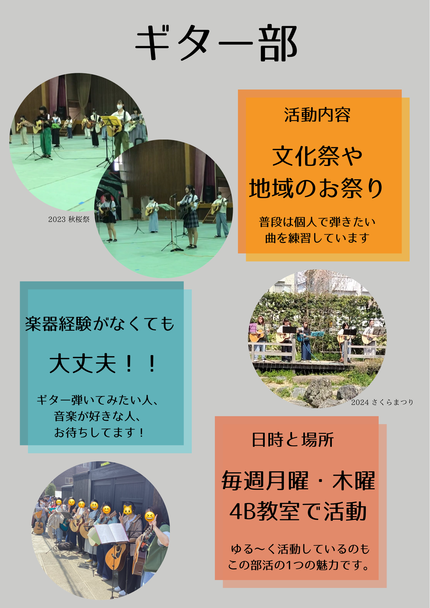 | ソフトテニス | 文学 | クイズ研究 | バスケットボール(男子) |